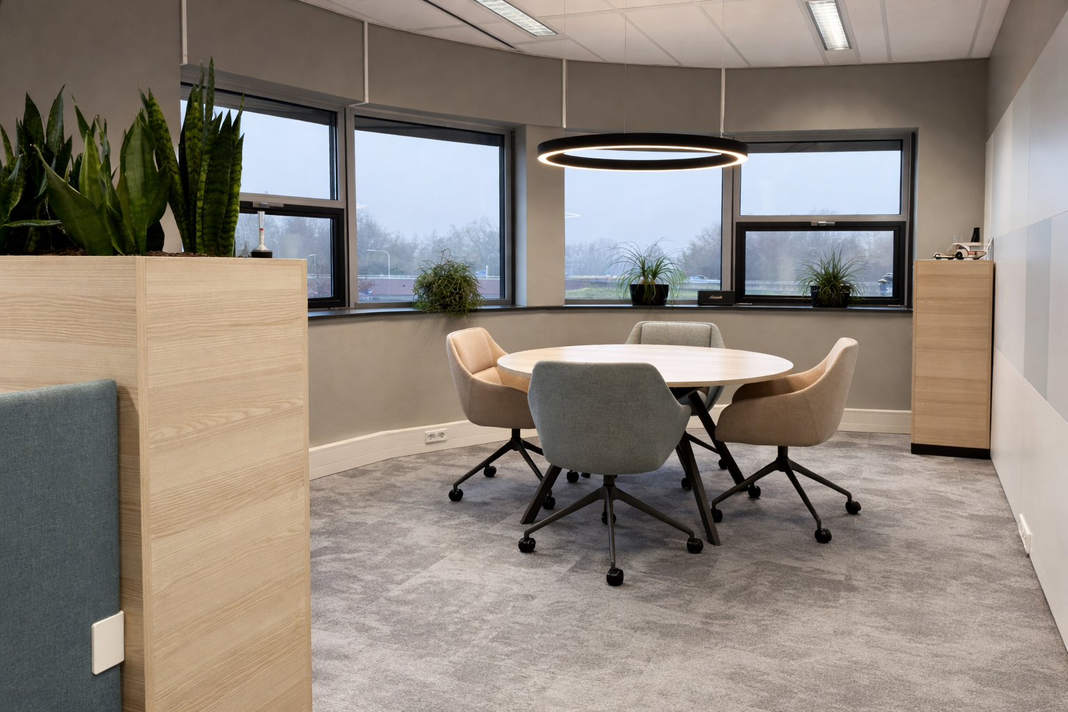 Hoewel het kantoor al samenwerkte met een vaste partner in kantoormeubels, bracht een tip van de buren hen ook bij ons aan tafel. Dat extra gesprek bleek waardevol: wij kregen de ruimte om een compleet plan te ontwerpen dat verder ging dan alleen losse meubels.