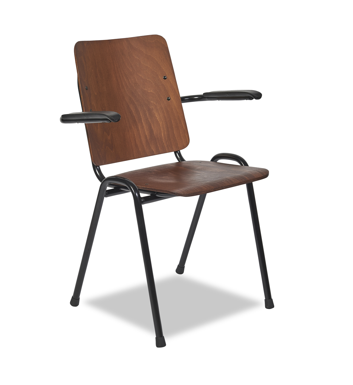 Frame van ronde buis 22 mm. Rug en zitting van blank multiplex, transparant gelakt.